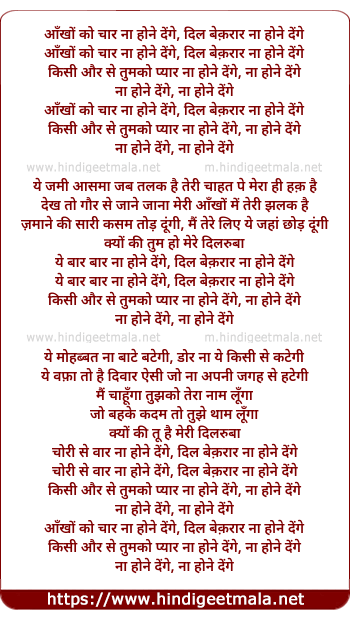 Lyrics of Aankho Ko Chaar Naa Hone Denge - आँखों को चार ना होने देंगे