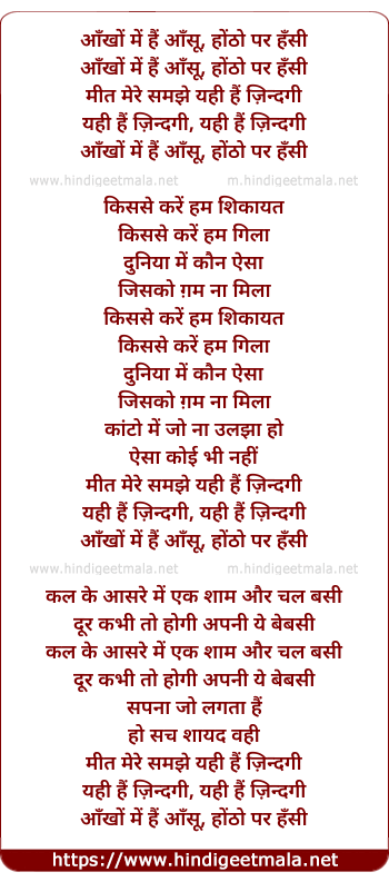 Lyrics of Aankho Me Hai Aansu - आँखों में हैं आँसू
