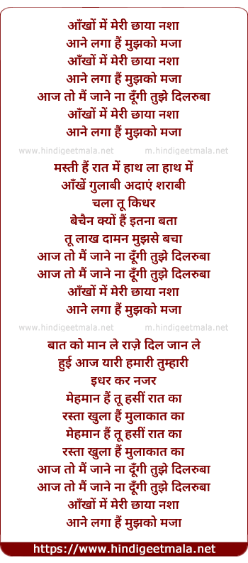 Lyrics of Aankho Me Meri Chhaya Nasha - आँखों में मेरी छाया नशा