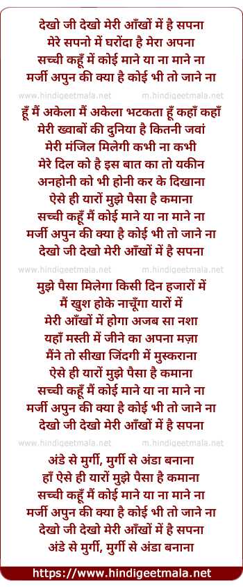 dekho ji dekho meri ankhon me sapna