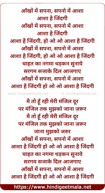 Lyrics of Aankho Me Sapna, Sapno Me Asha - आँखों में सपना, सपनो में आशा