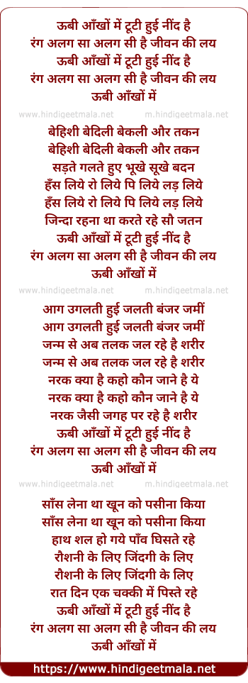 Lyrics of Aankho Me Tooti Hui Neend Hai - आँखों में टूटी हुई नींद है