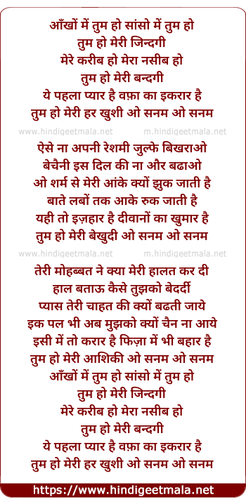 Lyrics of Aankho Me Tum Ho Sanso Me Tum Ho - आँखों में तुम हो सांसो में तुम हो