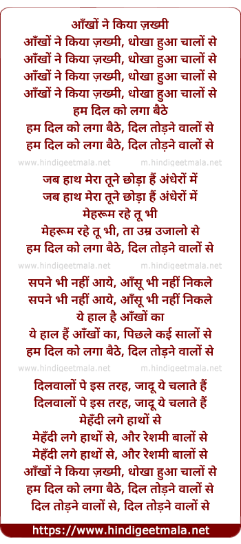 Lyrics of Aankho Ne Kiyaa - आँखों ने किया ज़ख्मी