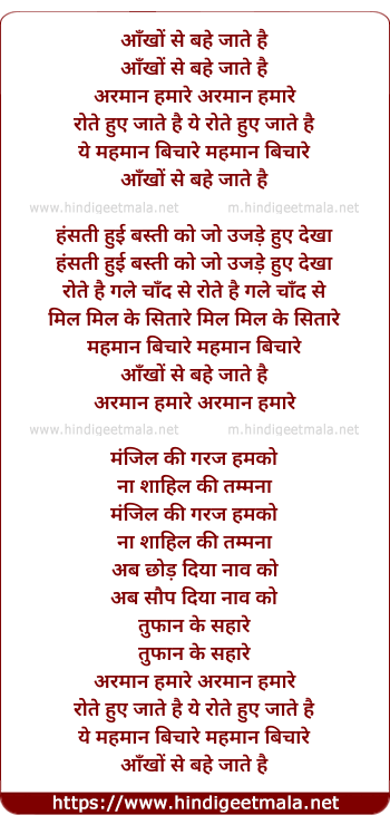 Lyrics of Aankho Se Bahe Jaate Hai - आँखों से बहे जाते है