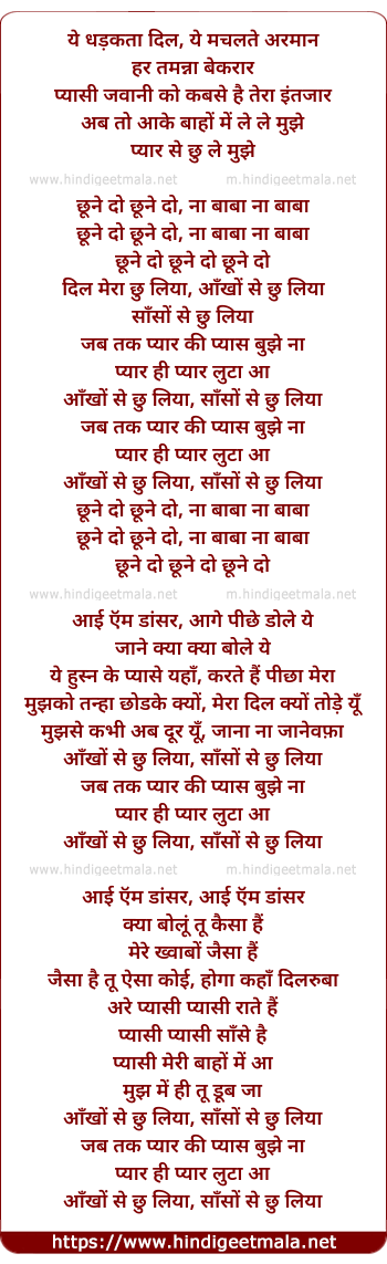 Lyrics of Aankho Se Chhune Do - आँखों से छुने दो