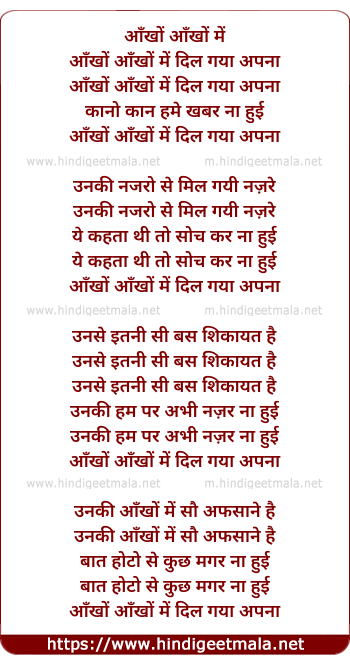 Lyrics of Aankhon Aankhon Me Dil Gaya Apna - आँखों आँखों में दिल गया अपना