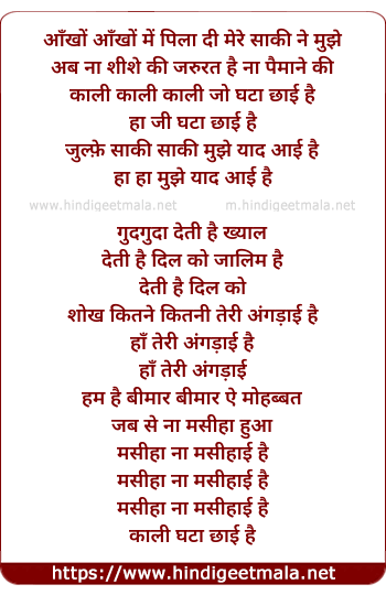 Lyrics of Aankhon Aankhon Me Pila Di Mere Saqi Ne - आँखों आँखों में पिला दी मेरे साकी ने मुझे