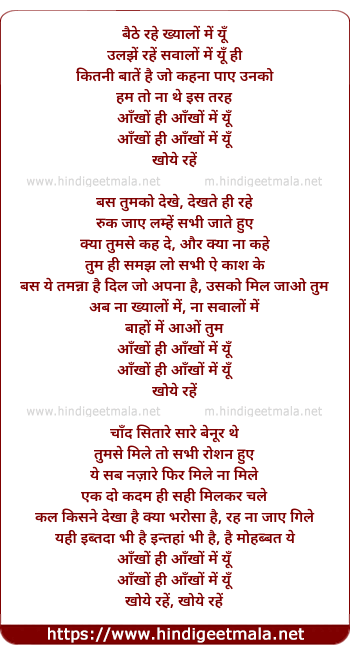 Lyrics of Aankhon Hi Aankhon Mein - आँखों ही आँखों में