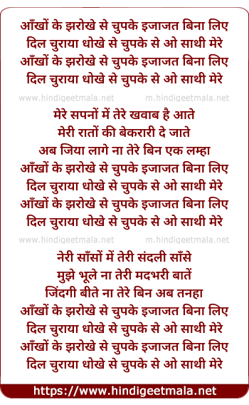 Lyrics of Aankhon Ke Jharoke Se - आँखों के झरोखे से चुपके इजाजत बिना लिए