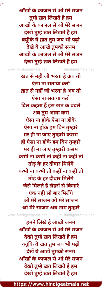 Lyrics of Aankhon Ke Kajal Se - आखो के काजल से