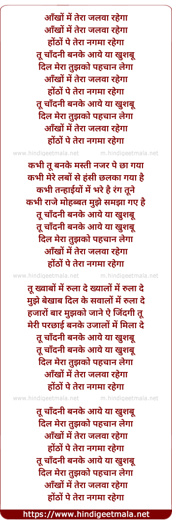 Lyrics of Aankhon Me - आँखों में