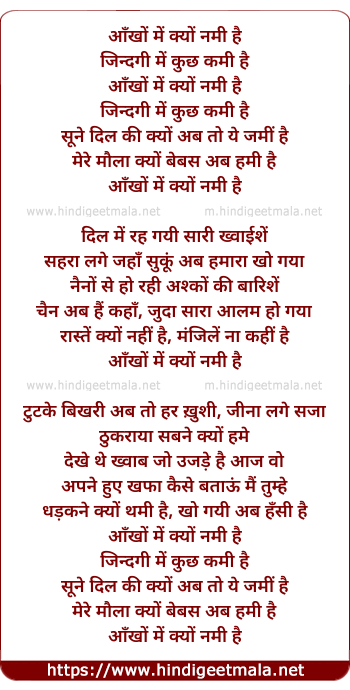 Lyrics of Aankhon Mein Kyun Nami Hai - आँखों में क्यों नमी है