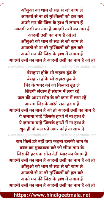 aadami usi ka naam hai oo ho aadami usi ka naam hai