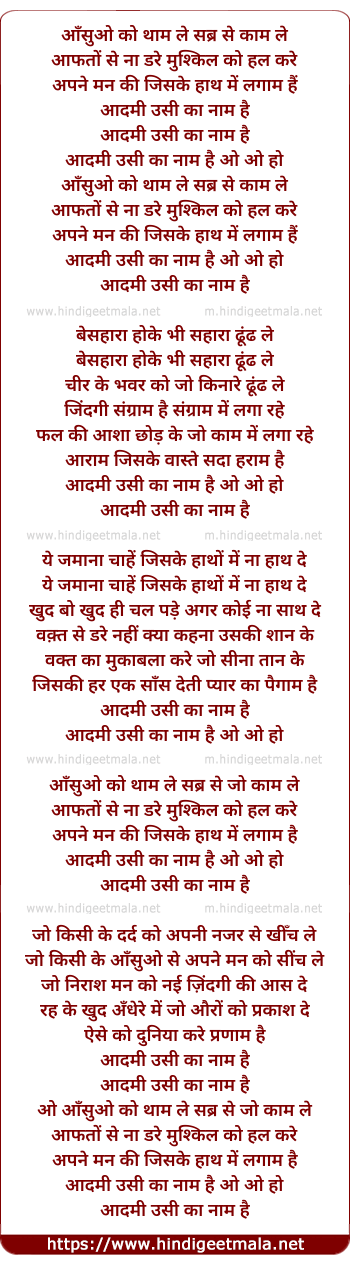 Lyrics of Aansuo Ko Thaam Le (Male) - आँसुओ को थाम ले