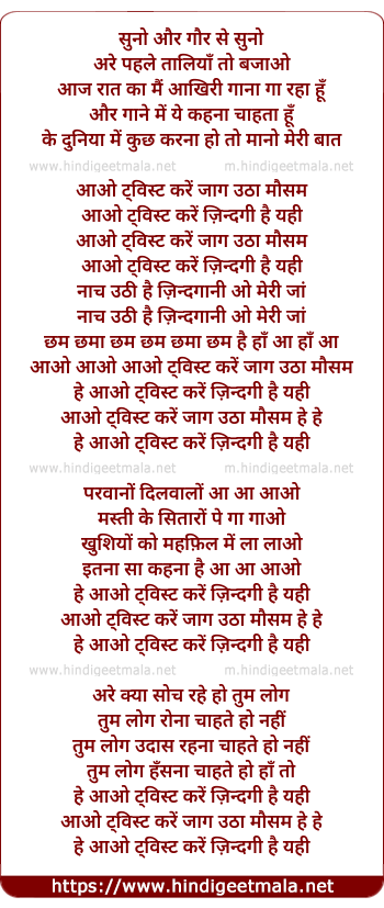 Lyrics of Aao Aao Aao Aao twist Kare - आओ आओ आओ ट्विस्ट करें