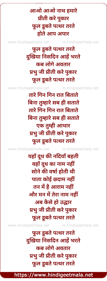 Lyrics of Aao Aao Nath Hamare - आओ आओ नाथ हमारे