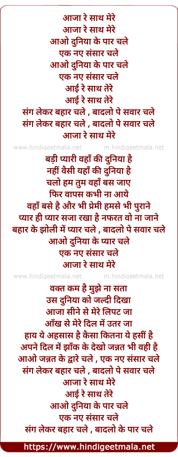 Lyrics of Aao Duniya Ke Paar Chale - आओ दुनिया के पार चले
