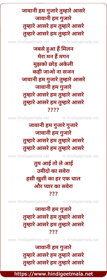 Lyrics of Aao Jawani Hum Guzaare Tumhare Aasre - आओ जावानी हम गुजारे तुम्हारे आसरे