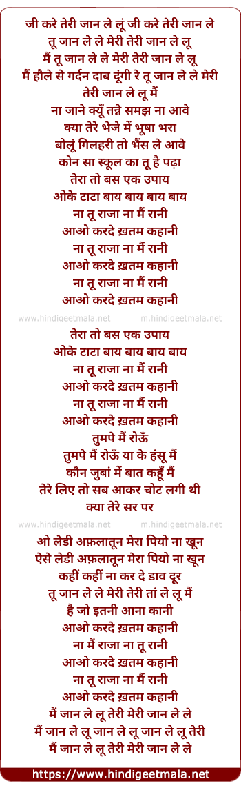 tu jaan le le meri teri jaan le lu