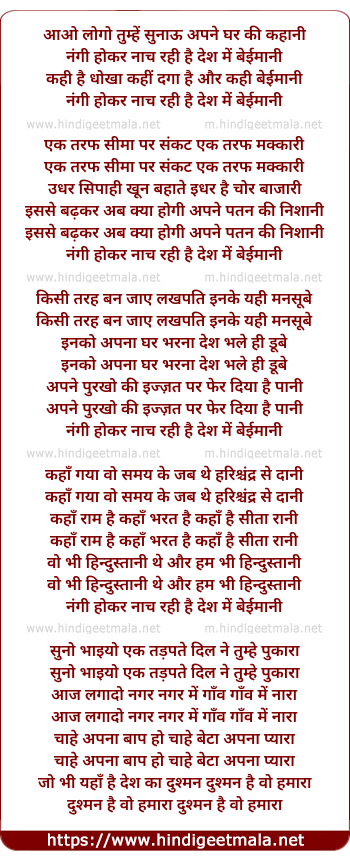 Lyrics of Aao Logo Tumhe Sunau Apne Ghar Ki Kahani - आओ लोगो तुम्हें सुनाऊ अपने घर की कहानी