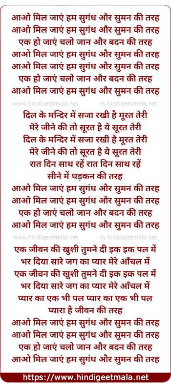 Lyrics of Aao Mil Jaaen Ham Sugandh Aur Suman Ki Tarah - आओ मिल जाएं हम सुगंध और सुमन की तरह