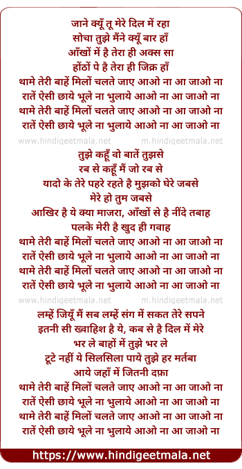 thame teri bahe milo chalte jaye aao na aa jaao na