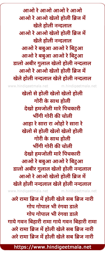 Lyrics of Aao Re Aao Khelo Holi Biraj Mein - आओ रे आओ खेलो होली बृज में
