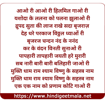 Lyrics of Aao Ri Aao Ri Hil Mil Gaao Ri - आओ री आओ री हिलमिल गाओ री