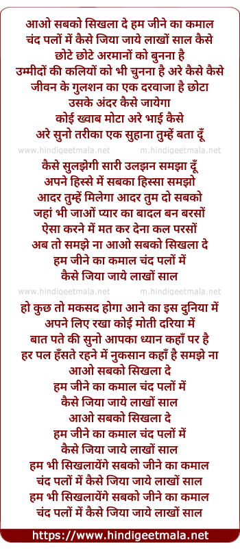 Lyrics of Aao Sabko Sikhla De - आओ सबको सिखला दे