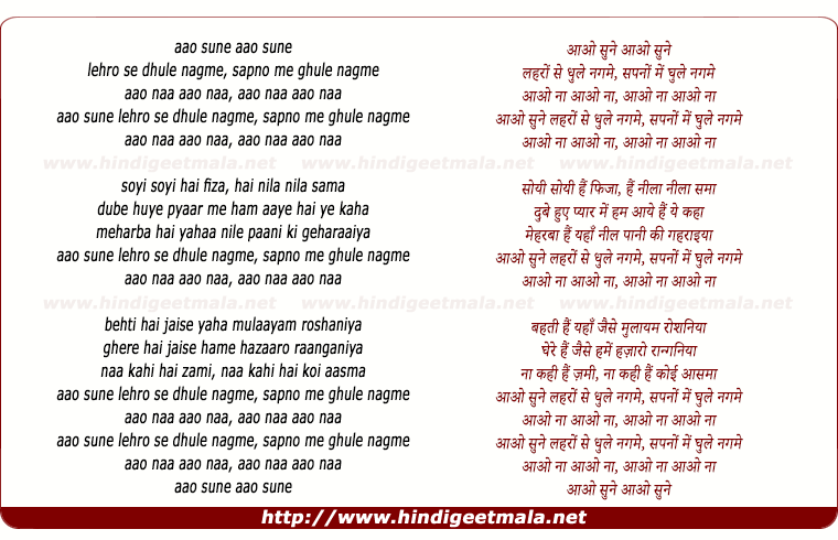 Lyrics of Aao Sunen, Laharon Se Dhule Nagamen - आओ सुने लहरों से धुले नगमे
