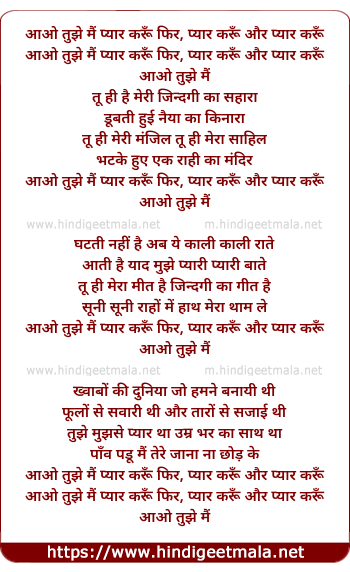 Lyrics of Aao Tujhe Main Pyar Karun - आओ तुझे मैं प्यार करूँ