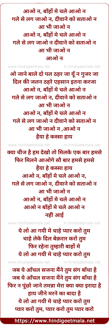 Lyrics of Aaon Na Raaho Me - आओ न राहों मे