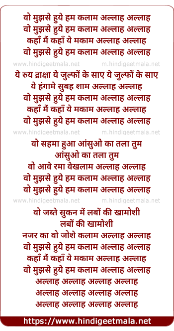Lyrics of Aap Hum Se Jo Dil Laga Lete - वो मुझसे हुये हम कलाम अल्लाह अल्लाह