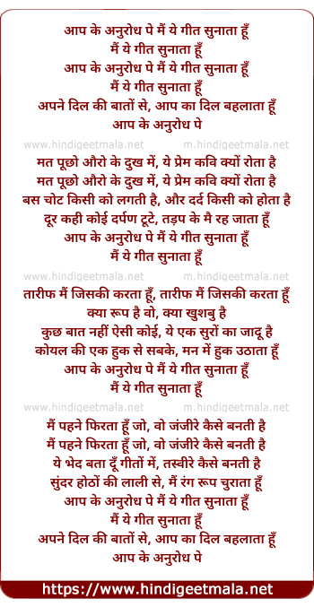 Lyrics of Aap Ke Anurodh Pe Main Ye Geet - आप के अनुरोध पे मैं ये गीत