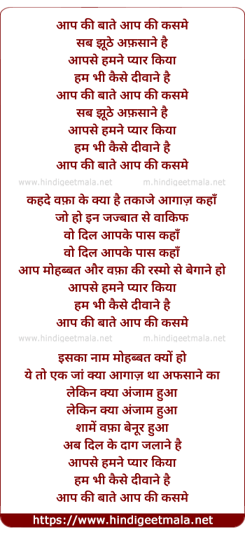 Lyrics of Aap Ki Baatein Aap Ki Kasme Sab Juthe - आप की बाते आप की कसमे सब झूठे