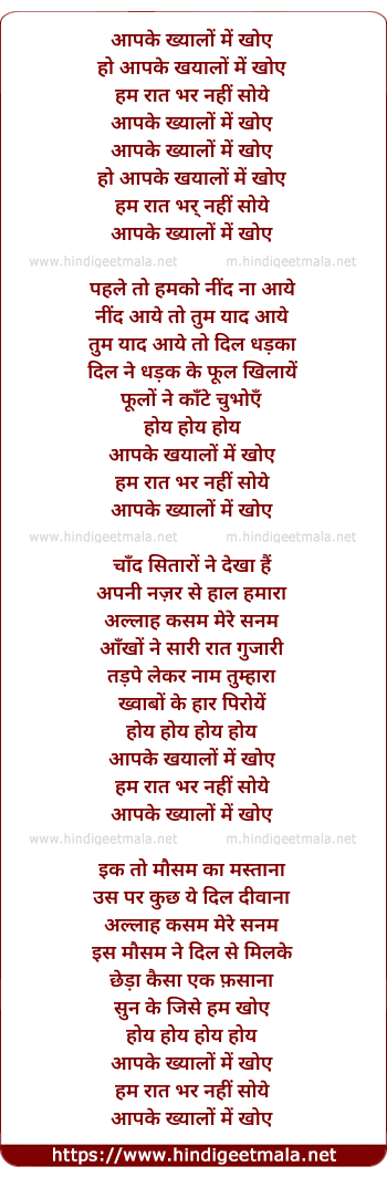 Lyrics of Aapke Khayalo Me Khoye - आपके ख्यालों में खोए