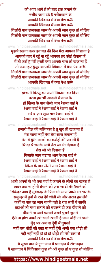 Lyrics of Aap Ki Khidmat Me - आपकी खिदमत में