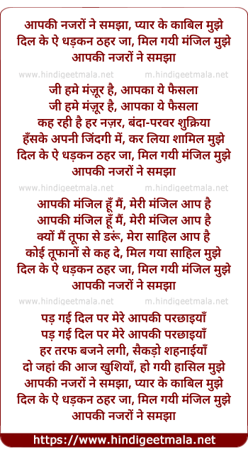 Lyrics of Aap Ki Nazro Ne Samjha, Pyar Ke Kabil Mujhe - आपकी नजरों ने समझा, प्यार के काबिल मुझे