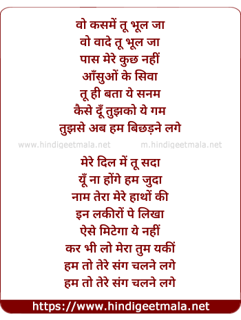 Lyrics of wo Kasmein Tu Bhul Ja - वो कसमें तू भूल जा