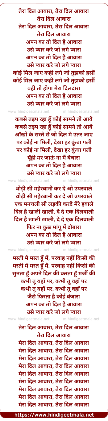 tere dil aawara, tere dil aawara