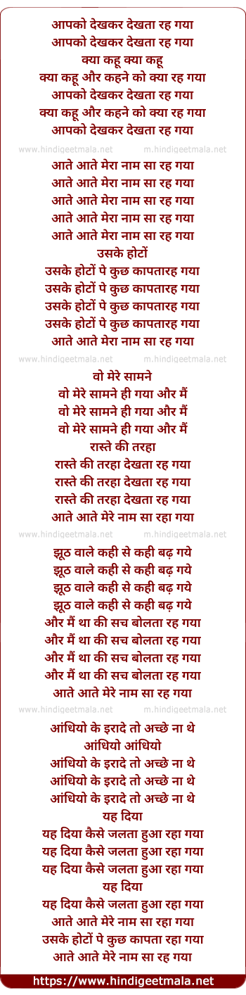 Lyrics of Aapko Dekhkar Dekhta Reh Gaya - आपको देखकर देखता रह गया