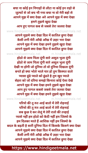Lyrics of Aapne Mujh Me Kya Dekha, Humne Tujhme Khuda Dekha - आपने मुझ में क्या देखा, हमने तुझमे खुदा देखा