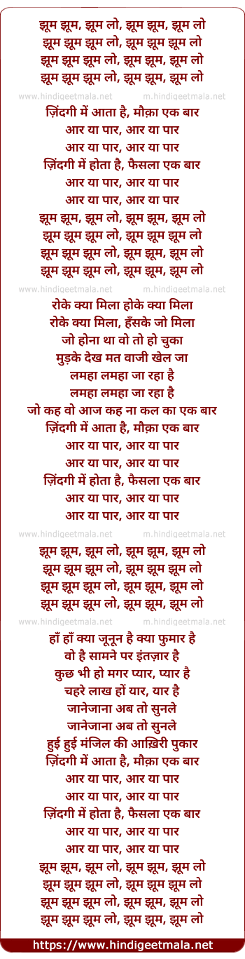 Lyrics of Aar Ya Paar (Part 1) - आर या पार