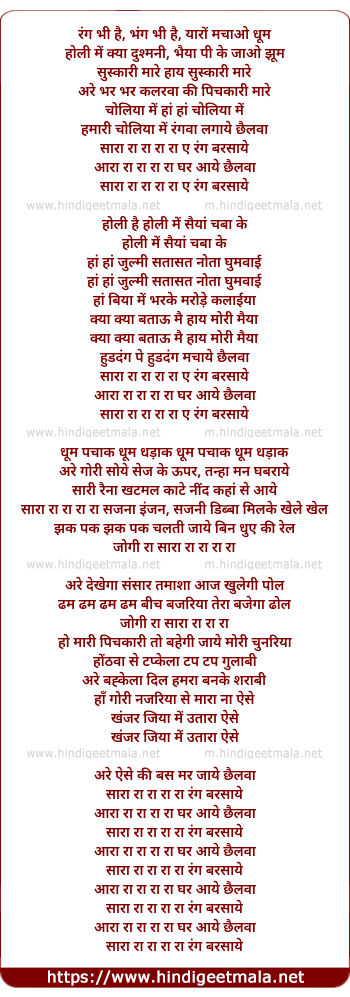 Lyrics of Aara Ra Ra Ra Ra Ghar Aaye Chhailawa - आरा रा रा रा रा घर आये छैलवा