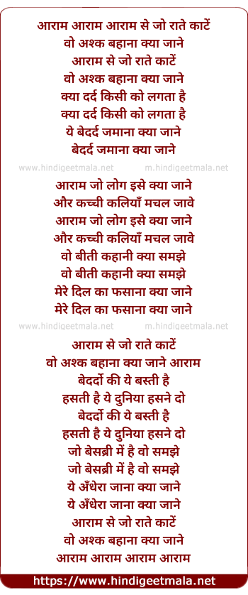 Lyrics of Aaram Se Jo Rate Kate - आराम से जो राते काटें