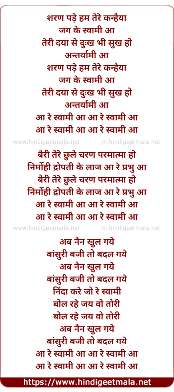 Lyrics of Aare Swamy Aare - आरे स्वामी आरे
