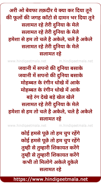 Lyrics of Aari O Bewafa - अरी ओ बेवफा