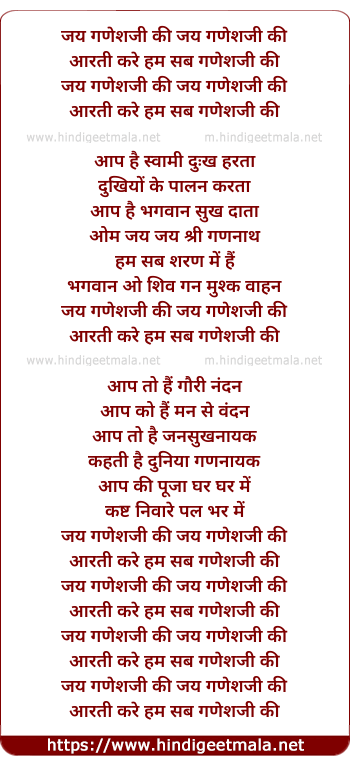 Lyrics of Aarti Kare Jai Ganesh Ji Ki