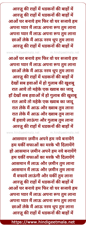 Lyrics of Aarzoo Ki Raaho Me - आरज़ू की राहों में